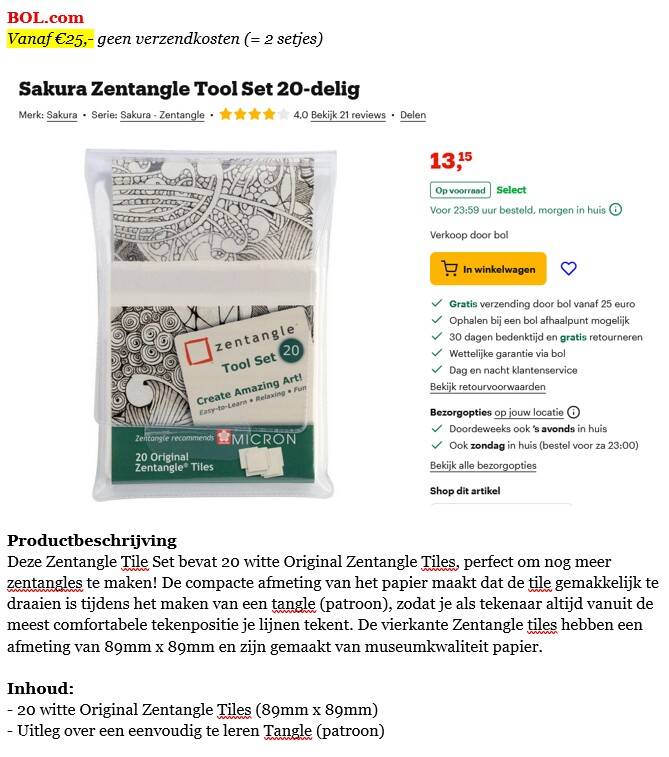 *** In maart 2026 heb ik Zentangle tiles besteld bij BOL.com ***