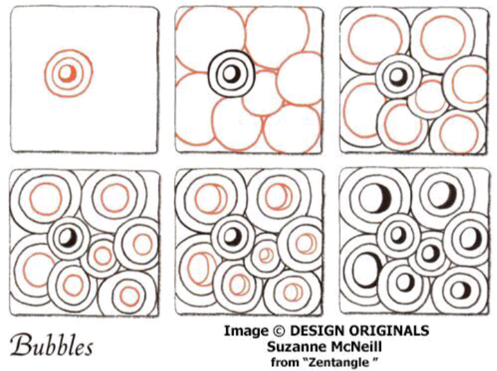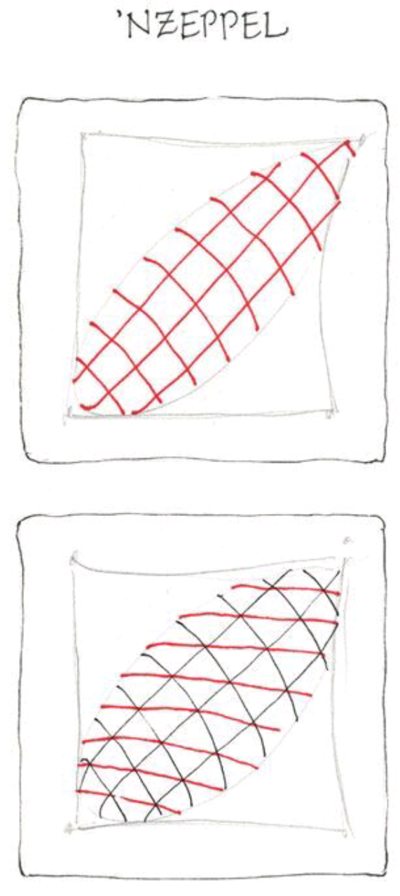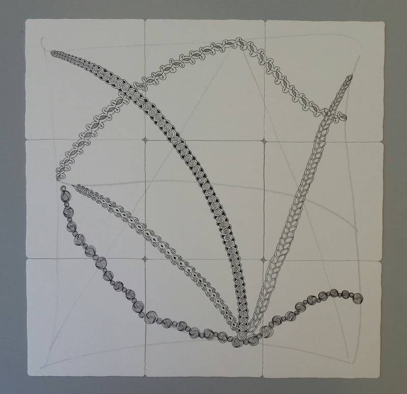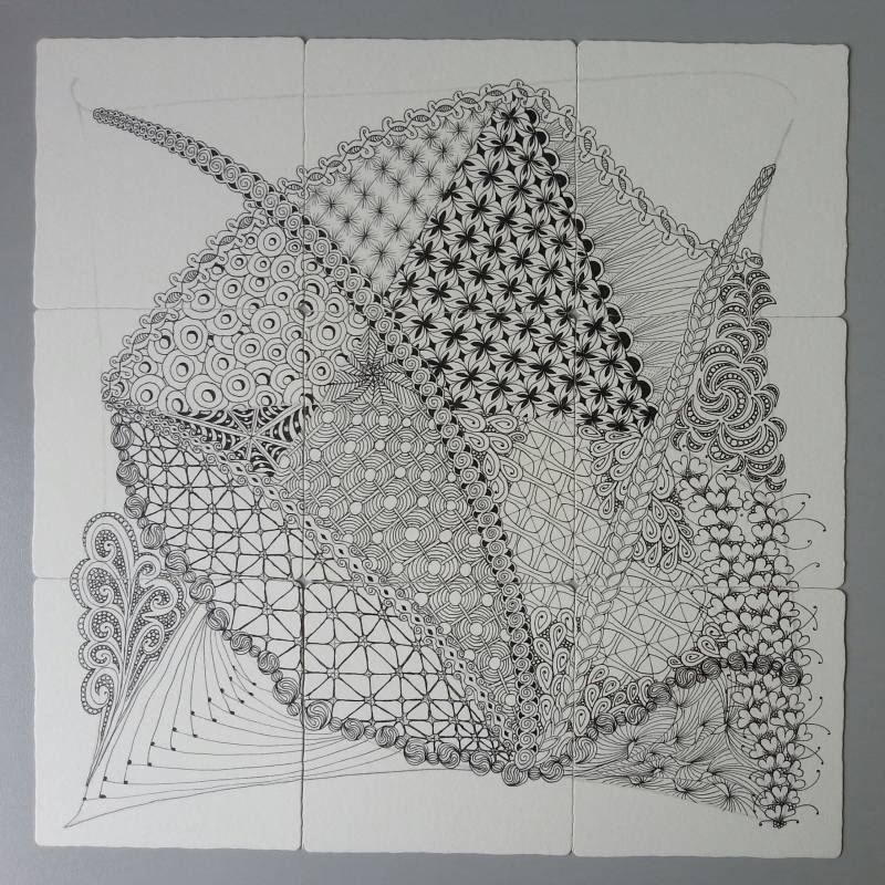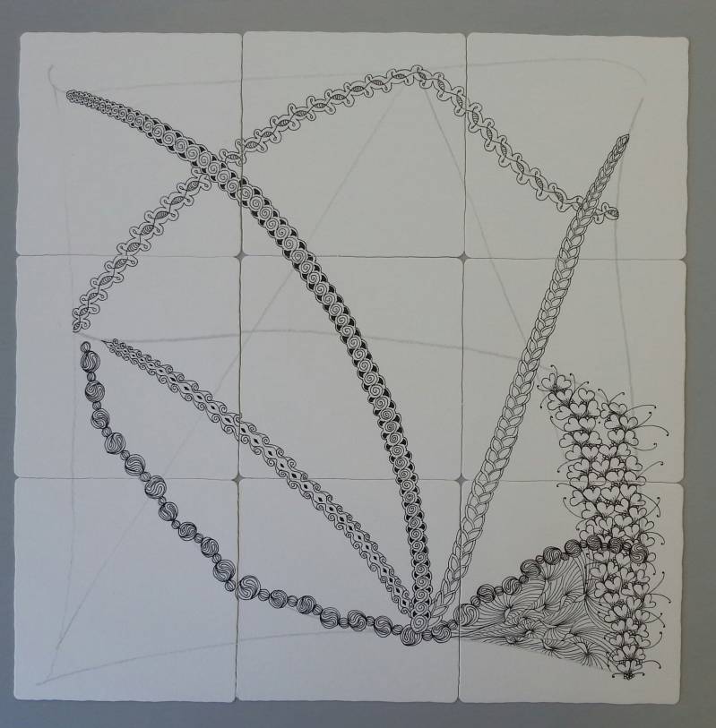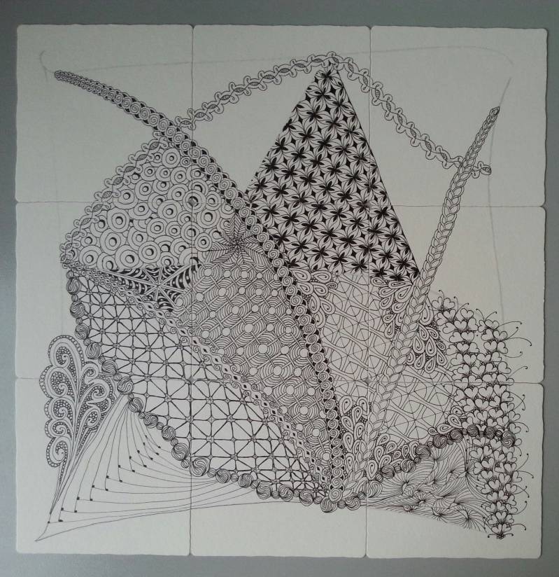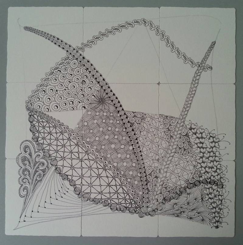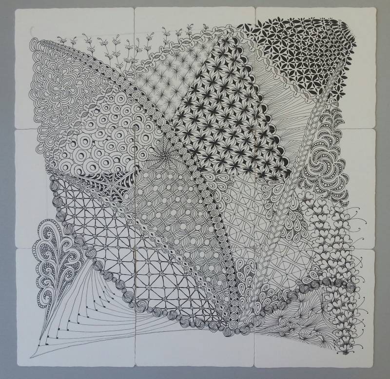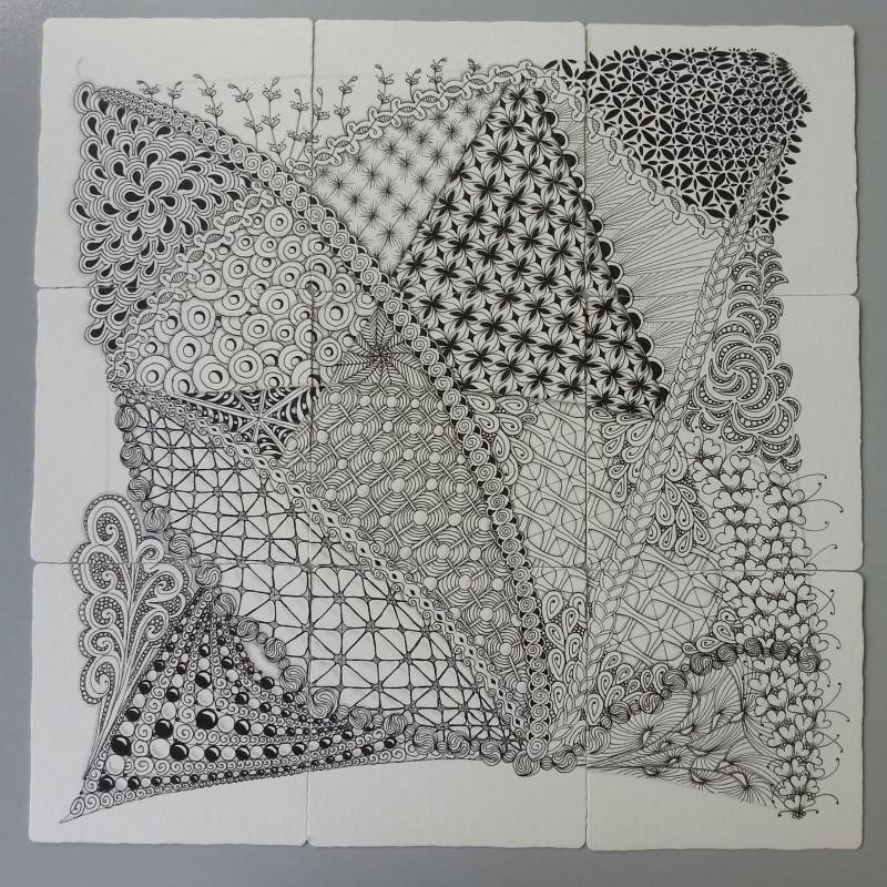 Deze 9 tiles vormen samen één Zentangle ensemble.