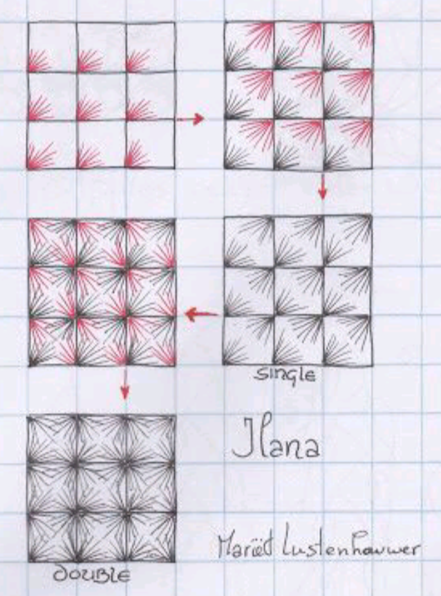 Er komen nog meer patroontjes die ik voor deze Zentangle gebruikt heb,